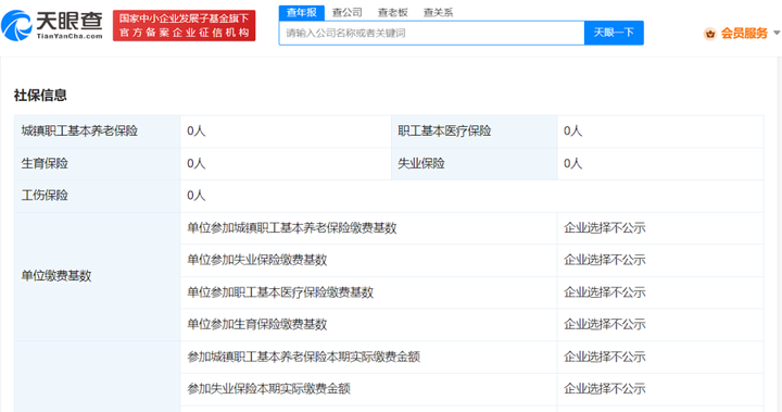 泓泉影視文化公司成立于2020年12月,注冊資本100萬人民幣,法定代表人、執行董事、大股東為何旭軍,宋祖兒擔任監事并持股10%。年報信息顯示,該公司參保人數為0。